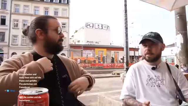 01:04:08Zu Beginn des Streams genießt das Team das sonnige Wetter in Leipzig. Jeff hat offenbar zu tief ins Glas geschaut, ist also heute nicht dabei. Die Gruppe macht sich auf den Weg, wobei sie zunächst eine kleine Verkehrsbehinderung und viele Fahrradfahrer bemerken. Der Fokus liegt auf einer spontanen Erkundung der Stadt, wobei die Suche nach einem geeigneten Parkplatz für das Fahrzeug Vorrang hat.