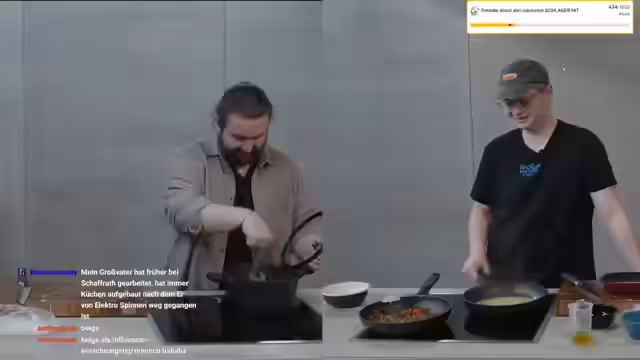 06:25:41Während des Kochduells treten mehrere Probleme auf. Ein technischer Fehler führt dazu, dass ein Streamer die Anweisungen des anderen nicht sehen kann. Inhaltlich geraten sie in eine Diskussion über die korrekte Zubereitung, insbesondere die Panierung des Fetakügelchens. Es kommt zu Missverständnissen, als einer der Streamer das Ei falsch einsetzen will, obwohl der andere auf das Problem eines stockten Eis hinweist, das er als Herzfeind bezeichnet. Trotzdem wird eine friedliche Lösung gefunden, indem der Feta-Knäuel verwendet wird.