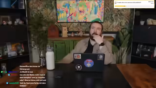 00:12:48Der Streamer spricht über seine Pläne, zukünftig wieder mehr Outdoor-Streams und Grillformate zu veranstalten. Hierfür ist die technische Infrastruktur draußen fast fertig, es fehlt nur noch eine weitere Kamera. Er stellt die neuen Teammitglieder vor: Long, der für Social Media und Produktion zuständig ist, und Nils, der an vielen Ecken mithilft. Zusätzlich erwähnt er, dass heute Technik-Niklas vorbeikommen wird, was zu möglichen, kurzfristigen Stream-Unterbrechungen führen könnte.