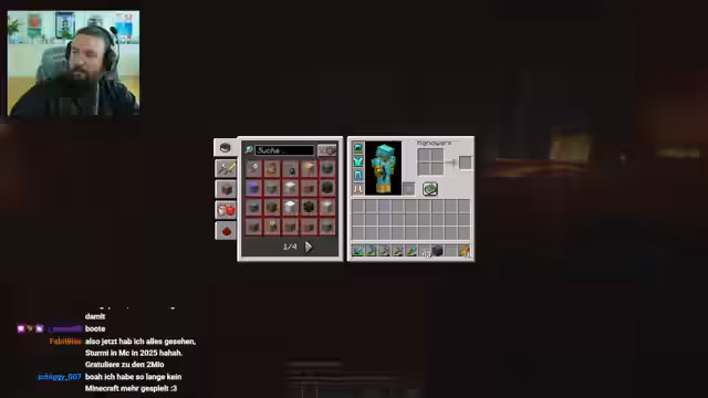 00:10:07Nach dem Update auf Minecraft-Version 1.21.7 mit den neuen 'Happy Ghasts' stellt der Streamer technische Schwierigkeiten fest. Shader der alten Version sind inkompatibel, was die Neuinstallation einer Iris-Version nötig macht. Die Suche nach den neuen, fliegenden Kreaturen im Nether gestaltet sich zunächst schwierig, da er sich in einer unwegsamen Lava- und Basaltlandschaft zurechtfinden muss.