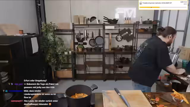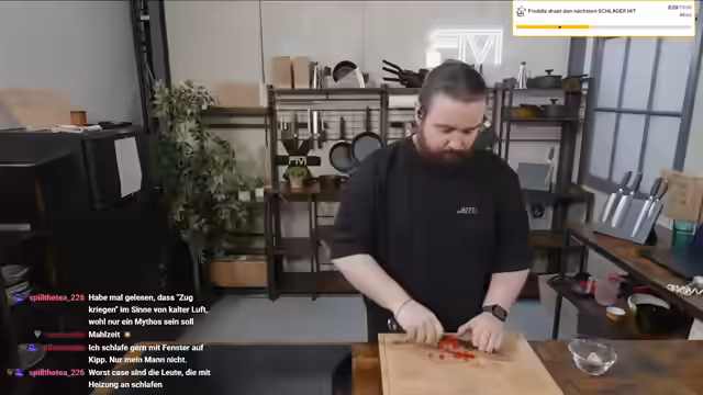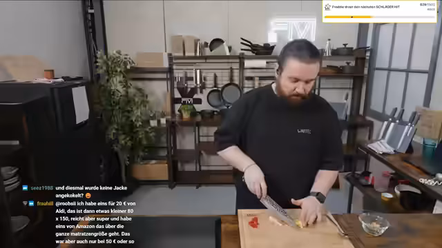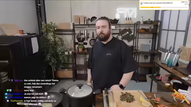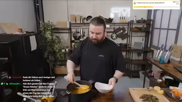 00:32:27Der Streamer berichtet über seinen Versuch, einen festen Biorhythmus zu etablieren, der das Aufstehen um 7 Uhr morgens, Sport und berufliche Tätigkeiten erst ab 10 Uhr beinhaltet. Er stellt fest, dass dies gut funktioniert und sein Ausschlafen am Wochenende nun 8:30 Uhr bedeutet. Er beginnt mit der Zubereitung einer Kürbissuppe mit Kürbiskernkrokant. Er schält den Hokkaido-Kürbis, obwohl die Schale essbar ist, da er das Mundgefühl ohne Schale bevorzugt. Er dünstet Schalotten, Chili und Knoblauch an und fügt Ingwer hinzu, obwohl dieser nicht explizit im Rezept steht. Er erklärt, dass er morgen Abend wieder mit Gaming weitermachen wird, insbesondere mit Craft Attack.