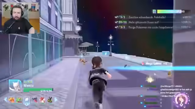 06:32:01Neben der Hauptmission begleitet der Streamer einen NPC durch die Stadt und nimmt an einem kurzen Quest teil, bei der ein verschwundener Anhänger gesucht wird. Er erkundet unterschiedliche Map-Bereiche wie Parks und Einkaufspässe, was ihm neue Pokémon bringt und questbezogene Aufgaben wie das Zerstören von schwebenden Pokébällen ermöglicht. Diese Nebenaktivitäten unterbrechen die repetitive Jagd und bieten Abwechslung.