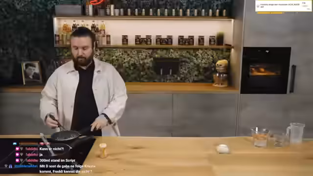 05:05:08Der Croissant-Auflauf wird fertiggestellt, indem die Croissants mit einer Mischung aus Vanillepudding übergossen und mit TK-Beeren und Mandelsplittern bestreut werden. Der Auflauf wird für weitere 15 Minuten in den Ofen geschoben. Währenddessen wird die Küche aufgeräumt. Der Streamer vergleicht das Gericht humorvoll mit einem "edlen Ofenritter". Es wird über die Küchenroutinen der Eltern gesprochen, die während des Kochens stets Ordnung halten. Der Streamer räumt ein, dass er dies nicht immer schafft. Es wird über die Vor- und Nachteile einer Spülmaschine diskutiert. Der Streamer empfiehlt einen kleinen Geschirrspüler namens "Bob" für Single-Haushalte. Es wird auf die neue Webseite von Phoebe, der Kochmarke des Streamers, hingewiesen und um Feedback gebeten. Zudem werden neue Microplanes und ein Sparschäler im Shop angekündigt. Der Streamer erklärt, dass Kunden nun ihre eigenen Bundles im Shop zusammenstellen und 10% Rabatt erhalten können. Nach dem Backen wird der Croissant-Auflauf begutachtet. Der Streamer ist irritiert, da der Pudding nicht richtig gestockt ist. Die Croissants sind zu hart und der Auflauf ist insgesamt zu suppig. Der Geschmack des Puddings wird jedoch als lecker empfunden. Der Streamer bittet die Zuschauer um ihre Meinung zum Rezept und räumt ein, dass er selbst etwas verstört ist. Er vermutet, dass der Fehler möglicherweise darin lag, den Puderzucker zu früh hinzugefügt zu haben.