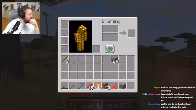 00:14:19Der Streamer und Mr. Ungeil beobachten einen Zombie, der auf einem Chicken reitet, ein sogenannter Chicken Jockey, was sie als extrem selten und noch nie zuvor in Minecraft gesehen bezeichnen. Sie versuchen, das seltene Wesen einzufangen und zu sichern, da es laut Chat super selten ist. Nach einigen Schwierigkeiten gelingt es ihnen, den Chicken Jockey zu sichern. Sie kommen auf die Idee des Kochstudios zurück, und Sturmi bietet Mr. Ungeil an, eine kleine Ecke für sein Kochstudio bereitzustellen, da er ohnehin nur buddeln möchte. Mr. Ungeil nimmt das Angebot gerne an und verspricht im Gegenzug, Sand und Clay zu liefern, da diese Ressourcen oft benötigt werden. Sie vereinbaren, sich im Februar wiederzusehen. Der Streamer hat weiterhin Schwierigkeiten mit der Orientierung und der Nutzung von Waypoints, da ihm die entsprechende Mod fehlt. Er versucht, die Koordinaten manuell einzugeben und stellt fest, dass er sich in der Nähe von Bergy befindet. Er äußert seine Angst vor sozialen Interaktionen in großen Projekten und vergleicht es mit seinem Umzug aus Köln nach Mönchengladbach, um dem Trubel zu entgehen. Er betont, dass das Projekt für ihn eine Überwindung darstellt.