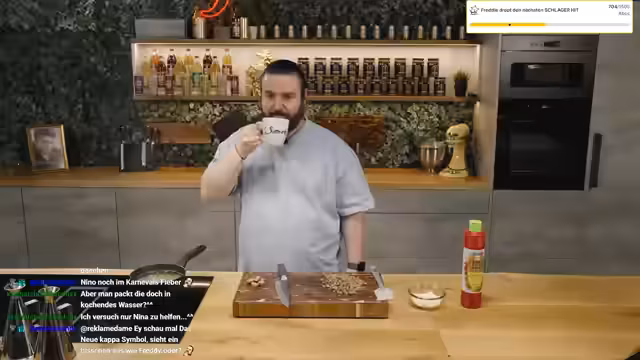 02:06:13Der Streamer spricht über seine Schwierigkeiten mit Koffein, da es ihm Angstzustände bereitet, obwohl er gerne Kaffee trinkt. Er überlegt, im Büro eine Kaffeemaschine zu nutzen, um das Mittagsloch zu überbrücken, obwohl er entkoffeinierten Kaffee bevorzugt. Er plant, im Winterurlaub erneut zu testen, ob er Koffein verträgt, da er bei Mate-Tee keine Probleme hat. Die gekochten Zwiebeln werden in kaltem Wasser abgeschreckt, um sie leichter handhaben zu können. Er sucht nach einem Bräter, um das Gericht zuzubereiten, und findet ihn schließlich. Die Füllung für die Zwiebeln, bestehend aus Hackfleisch, Reis, Paprika, Tomaten, Petersilie, Zitronensaft und Gewürzen, wird vorbereitet. Er ist unsicher, ob die Menge der Füllung ausreicht und ob die Tomatenstücke nicht zu groß sind. Er entscheidet sich jedoch, dem Originalrezept zu folgen und die Füllung so zu belassen, wie sie ist, da er sie notfalls später noch zerkleinern kann.