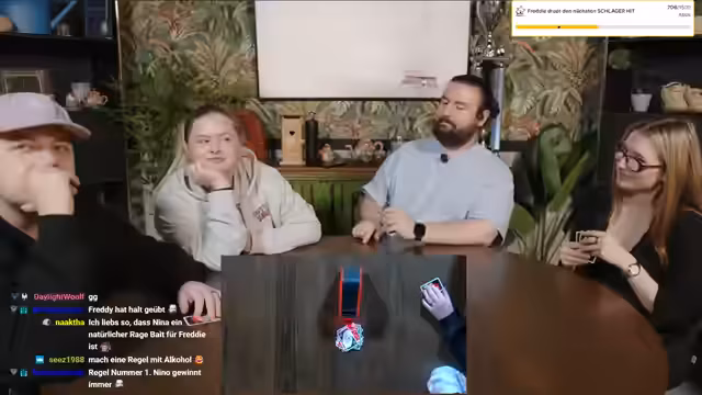 03:56:00Der Martini-Freitag beginnt mit einem Toast auf die Gesundheit und der Aufforderung, Schnaps zu trinken. Es folgen humorvolle Interaktionen und Gesänge, darunter ein Lied über einen kleinen Hut, der auf der Mauer sitzt. Es wird ein "wilder Strohhalm" gezeigt, der ausziehbar oder verstärkt ist. Die Stimmung ist ausgelassen und es wird viel gelacht. Es wird über ein Schokofranzbrötchen gesprochen und die Person wird humorvoll gefragt, ob sie gekündigt wird, wenn sie Gewalt ausübt. Es folgen weitere Gesänge und Rufe wie "Let's go, Bro" und "Trouble Starter, Instigator". Nina schreibt im Chat, dass sie den Stream bis hierhin "scheiße" fand, weil die Person dabei ist, und fordert sie auf, den Mund zu halten. Die Person nimmt dies mit Humor und schlägt vor, freundlich zu bleiben und die Stimmung zu entspannen. Es wird angemerkt, dass unterschiedliche Vibes völlig in Ordnung sind und man einfach entspannt weitermachen sollte. Es wird humorvoll gefragt, ob man gekündigt wird, wenn es "doll knallt", und es wird über eine Content-Vorhersage auf Instagram gesprochen, die besagt, dass "Personality" ab diesem Jahr wichtiger ist als alles andere. Es wird über die korrekte Schreibweise eines Wortes diskutiert und die Person gibt zu, es ihr Leben lang falsch gesagt zu haben. Abschließend wird erneut auf die Gesundheit angestoßen und Schnaps getrunken, gefolgt von weiteren Gesängen und humorvollen Interaktionen.