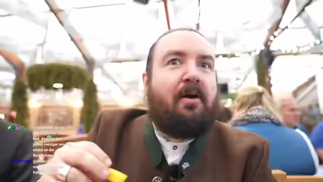 03:39:06Es wird festgestellt, dass man auch in anderen Zelten essen kann, aber man dem aktuellen Zelt treu bleibt. Es wird angekündigt, dass es auf dem Zweitkanal Zusammenschnitte der Streams geben wird. Das Essen wird als sehr gut bewertet, insbesondere die saftige Hähnchenbrust. Es wird festgestellt, dass das Hähnchen der neue Maßstab für alles ist. Es wird die Frage aufgeworfen, warum so gutes Essen serviert wird. Es wird vermutet, dass es draußen entspannter ist als im Zelt. Die Lautstärke im Zelt wird thematisiert, und es wird festgestellt, dass man kaum ein Wort versteht. Ein Dezibelmesser auf der Apple Watch zeigt 90-94 Dezibel an. Es wird über die Lautstärke im Zelt gesprochen. Es wird festgestellt, dass die Bedienungspersonen manchmal sehr helle Stimmen haben, die sich im Raum durchsetzen. Es wird festgestellt, dass der Schirm am Geldautomaten vergessen wurde. Es wird ein Sub für denjenigen versprochen, der herausfindet, wo der Schirm hingestellt wurde. Es wird erwähnt, dass der Tisch bis 16 Uhr reserviert ist. Es wird gehofft, dass der Regen nachlässt, damit man mit der Technik rausgehen kann. Es wird festgestellt, dass der Schirm nicht im Auto ist. Es wird erwähnt, dass die Weißwurst vom Hofbräuhaus sehr lecker ist. Es wird eine Wetter-App konsultiert. Es wird festgestellt, dass der Schirm am Geldautomaten stehen gelassen wurde, weil man beide Hände zum Geldabheben brauchte. Es wird sich über das Wetterradar informiert. Es wird beschlossen, dass der Schirm egal ist. Es wird erwähnt, dass man raus muss mit der Kamera. Es wird ein kurzer Blick in die Festhalle geworfen. Es wird erwähnt, dass die Stimme von Mühlen gehört wird. Es wird festgestellt, dass es laut und schön ist. Es wird sich nach dem Einpacken erkundigt. Es wird festgestellt, dass die Kamera sicher ist. Es wird gefragt, ob alles trocken ist.