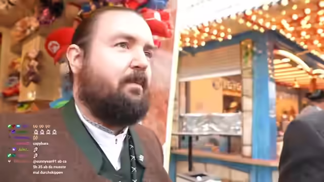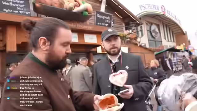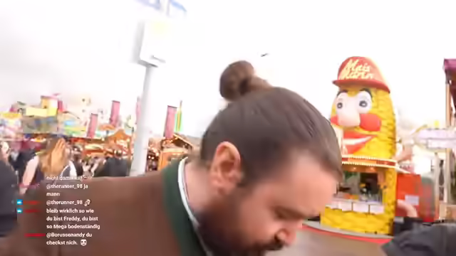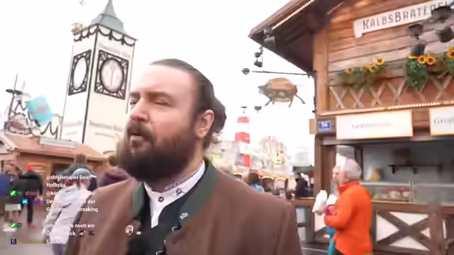 06:36:20Die Gruppe diskutiert über eine Fahrt in einem Fahrgeschäft, entscheidet sich aber dagegen. Es wird überlegt, ob Julian alleine fahren soll. Es wird über die Lautstärke auf dem Oktoberfest gesprochen und ein kurzer Smalltalk mit einem Passanten gehalten. Es wird über frühere Aussagen und Missverständnisse bezüglich der Interaktion mit Fans gesprochen. Der Fokus liegt auf der Suche nach einem Leberkäsbrötchen für Nils. Die Gruppe macht sich auf den Weg, verschiedene Essensstände zu erkunden, darunter Ofenkartoffeln und andere kulinarische Angebote. Es wird festgestellt, dass das Oktoberfest-Klischee bisher nicht übermäßig bedient wurde und es am Mittag entspannt ist. Technische Probleme mit dem Mikrofon werden kurz angesprochen und behoben. Die Gruppe schlendert weiter und kommentiert dabei die Umgebung und die angebotenen Speisen. Es wird überlegt, ob Mr. Trashback durch einen Skandal zurückgeholt werden kann. Die Gruppe entdeckt einen Stand mit Flammlachssemmeln und beschließt, diese zu probieren. Es wird überlegt, ob es noch veganen Leberkäse gibt und die Gruppe setzt ihre kulinarische Reise fort, wobei verschiedene Optionen wie Fischsemmeln und Rollmops in Betracht gezogen werden.