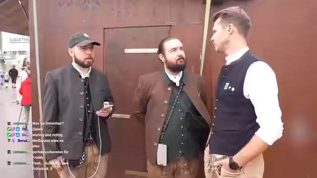 00:05:37Der Stream beginnt mit der Ankündigung einer "Europa-Fest"-Runde und einer Begrüßung des Chats. Es folgt ein Austausch über den Schlaf der Teilnehmer. Während einige gut geschlafen haben, klagt Julian über Schmerzen und schlechten Schlaf. Es wird überlegt, ob er im Hotel bleiben soll, aber er entscheidet sich dagegen. Es wird ein Outfit-Check angekündigt und über das bevorstehende Oktoberfest gesprochen. Man freut sich auf die erste Maß und vermeidet es, zu früh Oktoberfestbier zu trinken. Es wird überlegt, wer nüchtern bleibt, um zurückzufahren. Es wird über die Sicherheit auf dem Oktoberfest diskutiert und betont, dass man sich nicht "masslos vonlaufen lassen" werde. Man wolle das Oktoberfest als Tourist besuchen und sich nicht "gnadenlos aus dem Leben schicken". Der Plan ist, mit offenen Augen durchzugehen und die bayerische Kultur zu genießen, ohne zu übertreiben. Es werden Erfahrungen mit öffentlichen Verkehrsmitteln geteilt und gefragt, ob der Chat schon auf dem Oktoberfest war. Man freut sich auf das Essen, insbesondere auf veganen Leberkäse. Es wird über ein Leipziger Oktoberfest gesprochen, das enttäuschend war. Ein Spruch auf einem LKW wird kommentiert und das Wort "Schere" diskutiert.