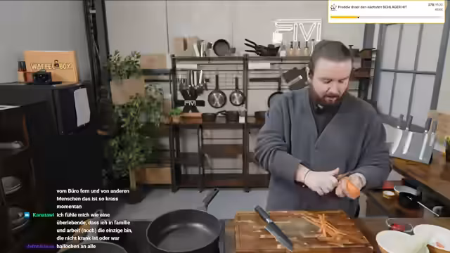 00:10:46Ein zentrales Thema ist die andauernde gesundheitliche Krise. Der Streamer schildert, dass er sich seit über einer Woche krank fühlt und trotz angebessener Besserheit nach wie vor nicht bei 100 Prozent ist. Er beschreibt den Zustand als 'komplette Krise' und 'Game Over'. Seine körperliche und mentale Verfassung hat sich so verschlechtert, dass selbst 15-minütiges schnelles Laufen zu Muskelkater führt – ein Warnsignal seines Körpers. Diese Erschöpfungszustände und die ständige Sorge um das Wohlbefinden des Teams, insbesondere von Nina und Nils, prägen den gesamten Stream und führen zur Entscheidung, nur einen kurzen Quick-Mittag zu veranstalten.