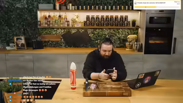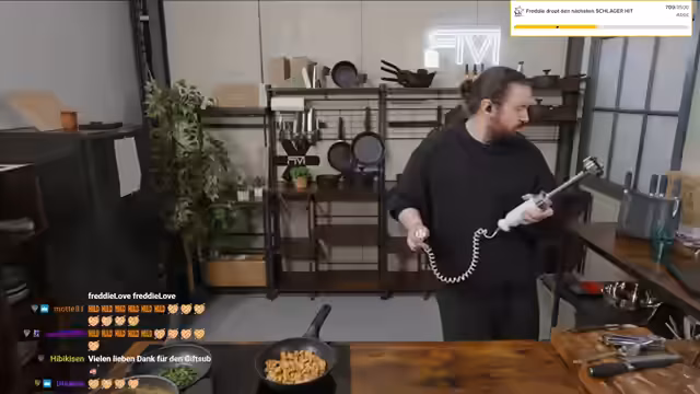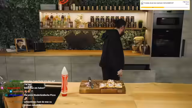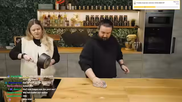 01:05:51Der Streamer und seine Gäste wagen sich an verschiedene kulinarische Experimente, beginnend mit einem Schokofranzbrötchen und später mit der Zubereitung eines „Hot Dickel“, einer ungewöhnlichen Kombination aus Gurke und Wurst. Während die Schokofranzbrötchen-Zubereitung anfänglich mit Herausforderungen bei der Konsistenz kämpft, wird die Idee des „Hot Dickel“ überraschend positiv aufgenommen. Die Diskussionen drehen sich auch um die Namensgebung von Bars und die Vorliebe für bestimmte Senfsorten, wobei der „Yellow Mustard“ von Heinz als Favorit genannt wird. Die Zuschauer beteiligen sich rege an den Gesprächen, geben Tipps und kommentieren die Experimente, was zu einer lebhaften und unterhaltsamen Atmosphäre führt. Trotz einiger Misserfolge bei den Süßspeisen bleibt die Stimmung ausgelassen und experimentierfreudig.