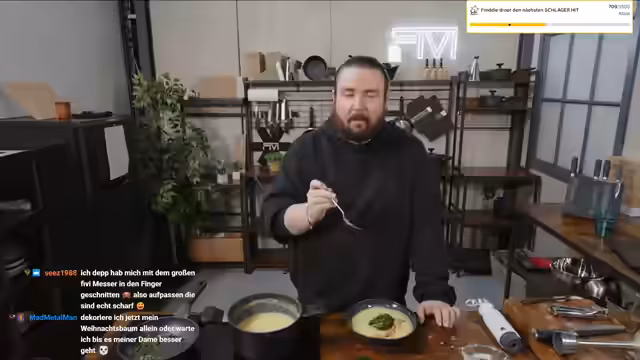 02:36:14Der Streamer begann mit der Zubereitung eines TikTok-Trends namens 'Lasagne Cheesy Creamy Sheets', einem Gericht, das er als typisches Studentenessen beschrieb. Er erklärte, wie Lasagneplatten wie normale Nudeln gekocht, in Olivenöl angebratenes Tomatenmark mit passierten Tomaten, Knoblauch, Salz und Pfeffer vermischt und dann mit zwei verschiedenen Käsesorten und Kochsahne zu einer cremigen Soße verarbeitet werden. Die gekochten und zerbrochenen Lasagneplatten wurden anschließend in die Soße gegeben, um eine 'richtige cremige Riesennudelpasta' zu kreieren. Trotz anfänglicher Skepsis bezüglich der Menge der Nudeln und der Zugabe von Olivenöl, die die Haftung der Soße beeinträchtigte, wurde das Gericht als simpel, gut und ein 'gutes Craving' bewertet, auch wenn es nicht ganz die erwarteten Käsefäden zog und geschmacklich eine 8 von 10 erhielt. Zum Abschluss des Koch-Streams wurde zu einem anderen Koch-Stream von Luna weitergeleitet, die einen Jägertopf zubereitete, und den Zuschauern ein schönes Wochenende gewünscht.