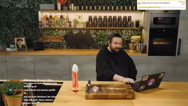 02:07:19Nachdem das Gericht für 15 bis 20 Minuten in den Ofen kam, bedankte sich der Streamer bei Elgato für den Twitch-Raid und betonte die Wichtigkeit ihrer Unterstützung für den Stream. Es wurde dazu aufgerufen, Elgato im Chat zu huldigen, da sie auch Mayonnaise als Lebenselixier betrachten. Anschließend wurden die Zuschauer gefragt, was sie am Wochenende vorhaben und ob sie im Zusammenhang mit Elgato Streamdecks zusammengebaut oder die Black Week Gebühren gefeiert haben. Der Streamer empfahl ausnahmslos alle Produkte von Elgato für den Einstieg ins Streaming-Game, da sein komplettes Home-Setup von ihnen ausgestattet wurde. Er erwähnte auch humorvoll, dass er sich nirgendwo gerieben habe, obwohl die fehlende Arbeitssicherheit im Studio angemerkt wurde.