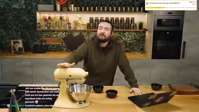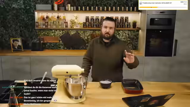 04:34:03Nach dem Rührprozess des Teigs wird festgestellt, dass dieser die richtige Konsistenz erreicht hat, wenn er zu kämpfen beginnt. Der Streamer äußert, dass fast alles, was er bisher gebacken hat, funktioniert hat, und stellt eine hypothetische Entscheidung zwischen einem Thermomix und einer KitchenAid an. Anschließend folgt eine Reflexion über den Erfolg von Outdoor-Formaten im Vergleich zum Studio, die zeigten, dass im Studio produzierte Inhalte besser funktionieren, was zukünftige Planungen beeinflussen wird.