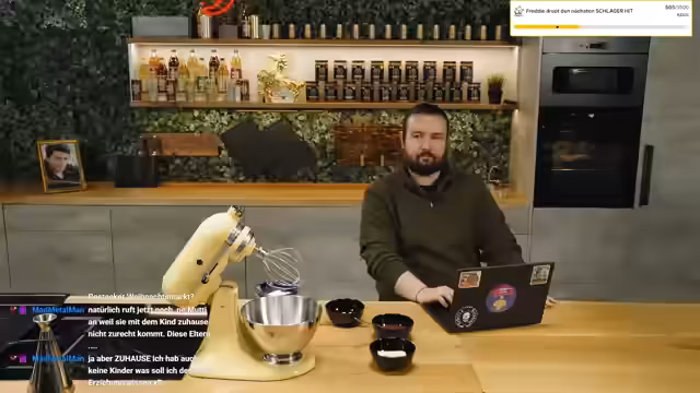 03:14:06Der Stream beginnt mit Diskussionen über die Vor- und Nachteile von Pistolenkuchen in einem Waffeleisen und einer Heißluftfritteuse. Bei der Vorbereitung kommt es zu einem schweren Unfall, bei dem der Streamer durchnässt wird. Die Stimmung sinkt, er bezeichnet den Tag als "doofer Tag", als nach und nach Probleme mit der Technik und der persönlichen Verfassung auftauchen. Um die Anspannung zu lösen, fährt der Streamer nach über zwei Jahren zu McDonald's, um sich ein Mittagessen zu holen und neue Ideen für YouTube-Videos zu sammeln.