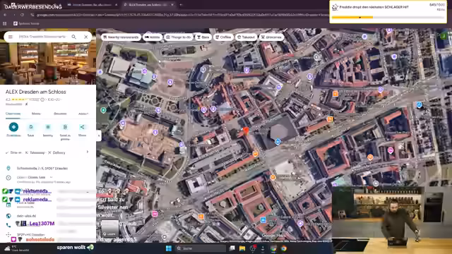 01:14:08Nach technischen Schwierigkeiten und einer Unterbrechung geht der Stream in eine neue Phase über. Es wird eine Partnerschaft mit A&O Hostels beworben. Mit dem Rabattcode "Sturmbuffel15" können Zuschauer 15% sparen. Der Fokus liegt auf dem Hostel in Dresden, das in direkter Nähe zum Hauptbahnhof liegt. Eine Empfehlung erfolgt für den Besuch des Dresdner Striezelmarktes, einem der bekanntesten Weihnachtsmärkte, der nur 17 Gehminuten vom Hostel entfernt ist. Die Stadt Dresden wird als Reise wert gepriesen.