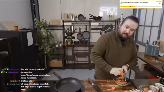 00:09:06Der Stream beginnt mit einer hektischen Begrüßung als "Quick Mittach". Nach anfänglichen technischen und organisatorischen Herausforderungen, wie dem vergessen Getränk, wird das heutige Hauptvorhaben vorgestellt: das japanische Okonomiyaki, ein Pfannkuchen. Es folgt eine kurze Erklärung des Gerichts und die Vorbereitung der Zutaten, wobei der Streamer Rotkohl anstelle von Weißkohl verwendet. Ein plötzlicher Termin beim Schornsteinfeger und ein Fußballspiel-Besuch im Borussia-Park bilden die persönliche Einordnung des hektischen Vormittags.