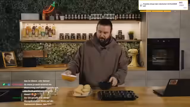 06:33:10Während er den Teig rührt, unterhält sich der Streamer mit Zuschauern über verschiedene Themen. Er erwähnt seine Ernährungsgewohnheiten, persönliche Rituale und Vorlieben. Er stellt seine Kochmarken Fifi und Phoebe vor, betont deren Qualität und faire Preise. Er spricht über die Bedeutung von ehrlichem Feedback und die Herausforderungen eines jungen Unternehmens. Der Streamer schildert auch seine Veränderungen im YouTube-Streaming-Bereich und wie er nun mit Lebensmitteln arbeitet, eine Umstellung, die er als sinnvoll und langfristig geplant beschreibt.