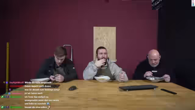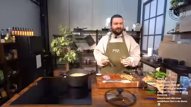 01:32:04Der Moderator erklärt, dass sein Hoodie von Worst Behavior ist, einer Marke, bei der es möglicherweise eine Kontroverse gab, von der er aber nichts mitbekommen hat. Er wechselt in eine andere Szene, wo Nils sitzt. Er nimmt sich noch etwas von dem Essen mit und lobt es. Er erwähnt, dass er das Rezept für die Nudeln auf der FIWI-Seite veröffentlichen wird. Er erklärt, dass er ein In-Ear trägt, um die Musik (die gerade nicht läuft) und sich selbst zu hören. Er scherzt über Kommentare, die Hörgeräte vermuten. Er hört genau das, was die Zuschauer hören, da kein Mikrofon angeschlossen ist. Er lobt das Essen als seinen Favoriten unter den bisherigen Quick-Mittag-Gerichten. Er erwähnt, dass er seit Anfang Januar auf TikTok live ist. Er wiederholt Kommentare aus dem Chat, was zu Verwirrung führt. Er äußert sich vage zu einem möglichen Besuch der Gamescom, während Timo definitiv anwesend sein wird. Er beschreibt Timo als jemanden mit einem Einkaufswagen voller Boosterpacks. Er erinnert sich an frühere Besuche der World of Tanks After Show Party auf der Gamescom. Er kündigt einen Mitkoch-Stream am Mittwoch an, wobei die Rezepte im Laufe des Tages auf Instagram veröffentlicht werden.