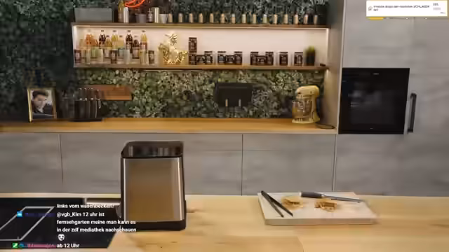 05:05:30Während des Kochduells werden verschiedene Techniken und Hilfsmittel eingesetzt. So wird ein Pürierstab genutzt, um eine cremige Basis zu schaffen, und es werden Messer aus der Phoebe-Kollektion beworben. Die Streamer probieren auch innovative Features aus, wie eine Handy-Kamera, die mit künstlicher Intelligenz Zutaten erkennen kann, was eine wilde und futuristische Stimmung erzeugt und für viel Gesprächsstoff sorgt.