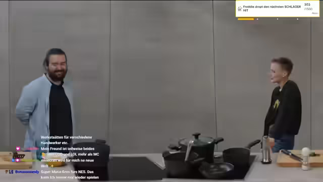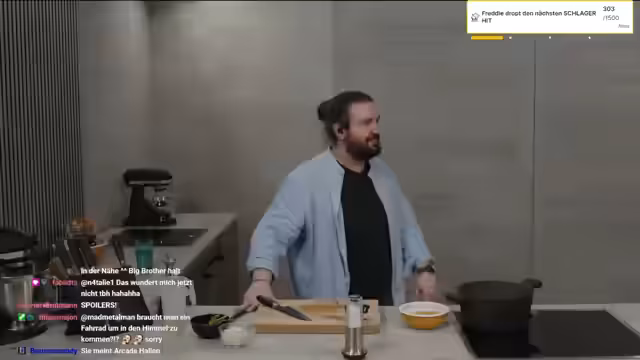 04:02:03Der Stream beginnt mit humorvollen Interaktionen und einem Rap, der sich auf ein vorausgegangenes, eher schlimmes Koch-Duell bezieht. Dabei werden kreative Köche und Pfefferattacken thematisiert, die angeblich in Arbeitsumgebungen stattgefunden haben könnten, was zu einem fantasievollen Szenario führt. Außerdem wird eine spontane Idee für einen Spotify-Playlist-Namen entwickelt, der sich auf wöchentliche Wrap-Duelle bezieht. Der Streamer zitiert auch seine frühere Uni-Zeit mit einer Erwähnung der App '-Gag' und lässt langsam in den Brunch-Modus übergehen.