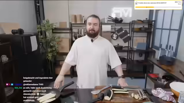 00:27:01Die Küche verlässt der Streamer, um auf Chatanfragen zu reagieren. Es entsteht eine lange Debatte über den Wert von Ausbildungen im Vergleich zum Studium, bei der er klar zum Handwerk rät und betont, dass man ohne hohen Abschluss ebenfalls erfolgreich sein kann. Anschließend spricht er über sein bevorstehendes YouTube-Video für 'Dinner Duel', das am Donnerstag veröffentlicht wird, und räumt ein, dass die Rezepte nicht immer perfekt funktionieren können. Schließlich wird eine Partnerschaft mit 'Finanzguru' erwähnt und ein Code für die Abo-Kündigungsfunktion geteilt.