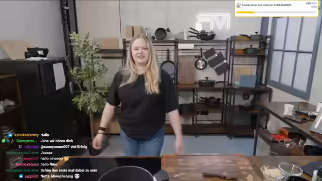 00:03:03Der Stream beginnt mit der Begrüßung der Chat-Teilnehmer. Es stellt sich heraus, dass die Moderatorin Vertretung für Julian übernimmt und den Quick-Mittags-Stream hostet. Sie präsentiert sich mit einer grünen FIWI-Kochschürze und erwähnt, dass es eine Vertretung für Freddy ist. Die Moderatorin stellt sich als Nina vor und erklärt, dass sie normalerweise bei Freddy im Team arbeitet, aber heute bei Kochsegmenten vertreten wird. Sie beginnt mit der Vorbereitung eines vegetarischen Kartoffelgulasch-Rezepts.