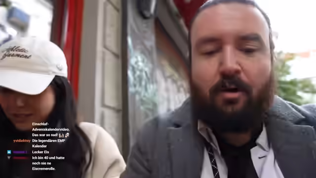 03:49:48Es wird über eine mögliche Kooperation mit Jill gesprochen, der auf dem YouTube-Festival einen Ice Cream Rolls Stand betreibt und in Hamburg sein Büro hat. Der Streamer äußert den Wunsch, dass eines Tages der Name 'Düsch' auf der Classic-Seite des Ladens steht. Es wird über die Geschichte des Ladens und die Namensänderung von 'Diabetes' zu 'Shirin David Eis' aufgrund von Beschwerden diskutiert. Der Einfluss von Shirin David wird hervorgehoben, und wie der Laden als Gag den Instagram-Kanal danach benennen wollte. Das Team beginnt mit dem Dreh eines Videos, während das Eis schmilzt. Die vegane Nutella wird als besonderes Merkmal hervorgehoben, da sie eine harte Haut bildet. Es werden verschiedene Eiskombinationen probiert und bewertet, wobei die eigene Kreation des Streamers gemischte Gefühle auslöst. Der Laden wird für sein Konzept und die Möglichkeit, individuelle Mischungen zusammenzustellen, gelobt.