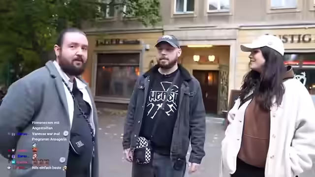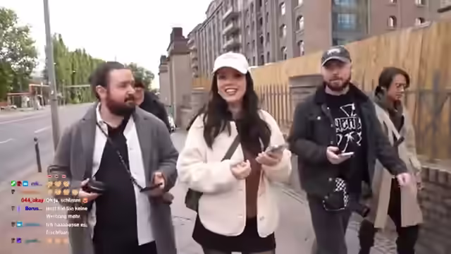 02:24:58Die Gruppe plant die nächste Station ihrer Tour und wünscht sich dafür Segways oder Rollerwagen. Es wird erwartet, dass ein kurzer Spaziergang gut tut, um das Essen sacken zu lassen und die Umgebung zu genießen. Die Route soll an touristischen Attraktionen wie dem Amazon Tower vorbeiführen. Der Preis des Burgers (9,70 Euro) wird als günstig für Berlin empfunden. Es wird eine Anekdote über die hohen Essenspreise in Köln erzählt. Vor dem Amazon Tower wird ein Abstecher in einen veganen Rewe vorgeschlagen, jedoch wird vor den rechtlichen Konsequenzen des Filmens in Rewe-Filialen ohne Genehmigung gewarnt. Es wird überlegt, ob man Fan-Shirts anziehen soll, und ein Rucksack wird als nützlich empfunden. Ein Besuch der Eastside Mall wird in Erwägung gezogen, um neue Mäntel zu kaufen. Long wird für seinen perfekten Look gelobt, und die Idee eines Umstyling-Streams wird geboren. Vanessa plant, acht Monate lang keine Videos zu machen, sondern stattdessen zu streamen und Clips für einen zweiten Kanal zu erstellen. Es wird über Läden gesprochen, die ganzjährig Weihnachtskram verkaufen. Ein Prime-Sub wird erwähnt. Die Gruppe macht Selfies mit Fans und nimmt ein Stück deutsche Geschichte (Berliner Mauer) in Augenschein. Die East Side Gallery wird besucht und Fotos vor der Freiheitsstatue gemacht. Es wird überlegt, ob die Bären und Adler auf den Türmen etwas mit der Wiedervereinigung zu tun haben. Die nächste Station soll etwas Sonne haben, und es wird versucht, spontan eine Genehmigung für einen Stream dort zu bekommen. Die Route wird so geplant, dass man gemütlich zu Fuß laufen kann. Die Berliner Mauer und die East Side Gallery werden als wichtige Orte hervorgehoben.