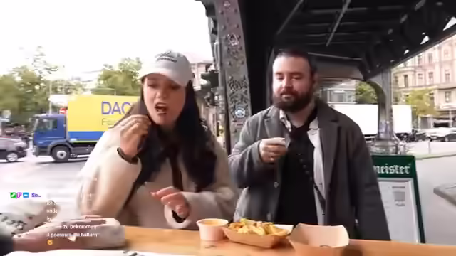 01:29:34Es wird darüber gescherzt, dass früher nur zwei Geschlechter auf der Toilette waren. Die echten knackig grünen Jalapenos auf den Pommes werden gelobt. Die Poutine wird erwähnt. Burgermeister gibt es nur dreimal und es ist einer der besten Burger in Berlin. Es wird überlegt, sich einen Burger zu teilen. Der Nugget Burger wird erwähnt, und es wird sich gefragt, warum Burger King die Tour nicht sponsert. Es wird gefragt, wer einen Nugget Burger gefrühstückt hat. Burgermeister ist einer der ersten Standorte und immer noch begehrt. Es wird kein YouTube-Video mehr gedreht, sondern eine Überleitung gemacht. Es wird über komische politische Takes gesprochen. Ein Hamburger hat die besten Pommes von Hamburg gezeigt. Eine Wespe wurde beim Dreh nicht geschadet. Es wird über eine Reservierung in dem Burgerladen gesprochen. Der Laden Freibeuter wird erwähnt. Es wird über den ersten Matcha beim Frühstück gesprochen. Der beste Matcha war von Safa. Es wird über den ZDF Fernsehgarten gesprochen. Es wird empfohlen, auf ein Reserviert-Schild zu achten, um den Streamer zu finden.