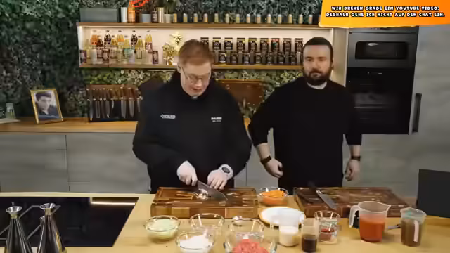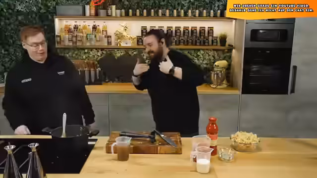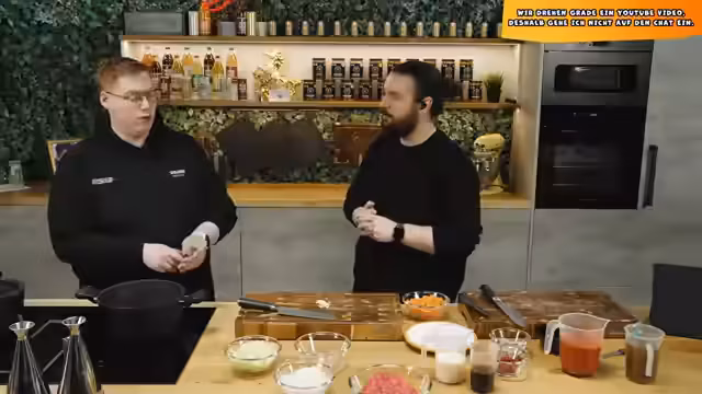 00:17:44Um technische Probleme zu umgehen, wechseln die Streamer auf die Plattform StreamTogether. Der Chat wird in ein separates Modul verlegt, und es wird angekündigt, dass auf während des Videodrehs eingehende Stream-Nachrichten nicht geantwortet wird. Der gemeinsame Chat wird von den Teilnehmern selbst als "Gs" bezeichnet. Es folgt der Übergang zum eigentlichen Hauptinhalt: dem Dreh eines "Lieblingsessen-Videos". Gemeinsam kochen sie Spaghetti Bolognese, wobei der Streamer betont, wie wichtig eine gute Vorbereitung, sogenannte "Mise en place", ist und Justus für seine vorbereitende Arbeit lobt.