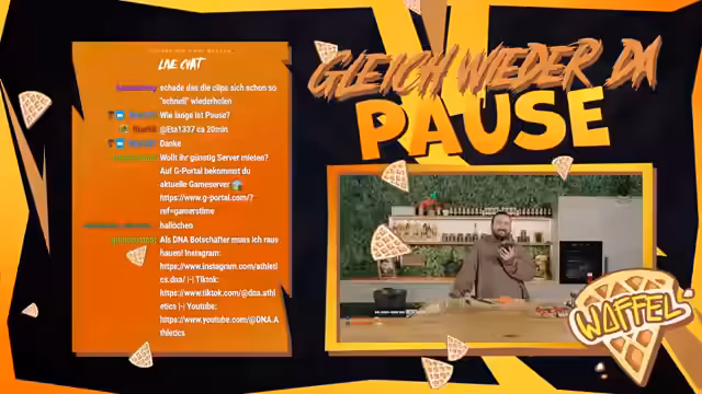 01:50:53Es kommt zu einer persönlichen Diskussion über Vorlieben und Abneigungen. Der Streamer spricht über seine Abneigung gegen Parmesan und Käse im Allgemeinen. Der Fokus verlagert sich dann komplett zum Backen, was er offenbar hasst. Dennoch kündigt er an, zusammen mit einem Gast Muffins zu backen, was das Team für den folgenden Mittwoch-Brunch benötigt.
