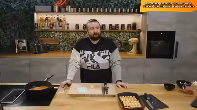 03:59:01Der Streamer bereitet ein Cannelloni-Gericht vor, indem er eine Sauce aus Tomaten, Basilikum und Sellerie zubereitet und mit Hackfleisch mischt. Er füllt die Nudeln mit der Füllung und deckt sie mit Sauce und Mozzarella ab. Wichtig ist, dass der Käse als Schutzschicht dient, um ein Verbrennen des Hackfleischs zu verhindern. Das Gericht soll mit Alufolie bedeckt bei 180 Grad für 30 bis 40 Minuten im Ofen backen, damit der Käse nicht zu dunkel wird.