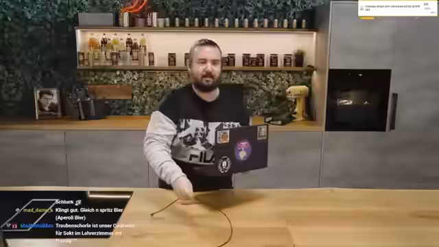 04:14:37Der Streamer sucht vergeblich nach einem Mikrofasertuch und findet es schließlich in einer leeren Schublade. Gemeinsam wird eine Methode zur Reinigung der Kochplatte ausprobiert, bei der Flächendesinfektionsmittel aufgetragen und mit einem Mikrofasertuch abgewischt wird. Das Ergebnis ist eine streifenfreie Platte. Danach wechselt das Thema zu einer Diskussion über Lehrer, bei der der Streamer von einer schlechten Erfahrung mit seiner Französischlehrerin erzählt, die offenbar Jungen hasste.