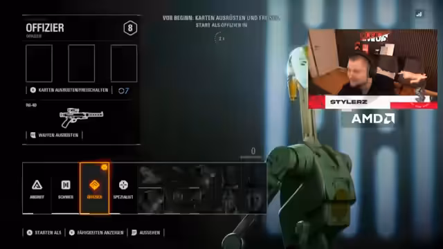 00:08:17Zu Beginn des Streams sucht der Streamer nach einem passenden Star Wars Intro und stellt fest, dass er keines besitzt. Er begrüßt seine Zuschauer und kündigt den heutigen Streaminhalt an. Es wird mit "Star Wars Battlefront 2" gestartet, ein Spiel, auf das er sich sehr freut. Einige Freunde wie Phalaxi und Papfi sollen mitspielen, jedoch hat ein Teilnehmer, Nick, technische Probleme mit dem Spiel.