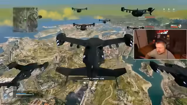 01:38:27Nachdem die Landezone festgelegt ist, beschließt das Team, in der Nähe eines Shops weiter zu looten. Man plant, Gegner zu jagen und deren Munition oder Verstärkungen zu nutzen. Dabei stellt man fest, dass das Gegnerteam eine sogenannte "Dauerdrohne" besitzt, die sehr stark ist und als Ziel für andere Spieler gilt. Da das Team über genügend Geld verfügt, erwägt man, selbst eine Drohne zu kaufen, um eine taktische Oberhand zu gewinnen und den Gegnern Paroli bieten zu können.