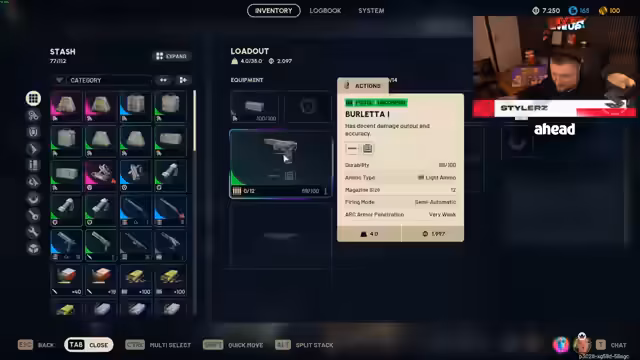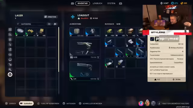 02:10:20Der Streamer gibt einen Einblick in sein Inventar-Management und gibt Tipps zum Verkauf von überflüssigen Gegenständen. Er erklärt, wie man durch den Verkauf von schlechten Ausrüstungsgegenständen wie geringwertigen Schutzaufbauten und Stichern schnell Kapital anhäufen kann, um später teure Upgrades oder Lagererweiterungen zu finanzieren. Er demonstriert die Sortier- und Verkaufsprozesse im Inventar.