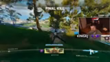 04:44:39Die Landephase in der neuen Runde ist äußerst chaotisch. Das Team landet verstreut, während andere Gruppen wie eine Horde auf einer kleinen Hille konzentriert landen. Es kommt sofort zu einem großen Kampf, da 16 Spieler auf engstem Raum aufeinandertreffen. In der unübersichtlichen Anfangsphase verliert ein Teammitglied sofort das Leben, nachdem es von einem Gegner in den Rücken geschossen wurde.