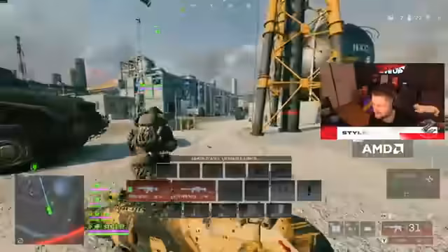 04:55:12Der Streamer und sein Team versuchen, mit einem Panzer voranzukommen, wobei der Streamer bemerkt, dass man fast überall durchfahren kann, außer durch Berge. Er fragt, wohin ein Teammitglied markiert hat, und es wird über eine CO2-Ghost-Kampagne und ein riesiges Loch in Kolumbien gesprochen. Die Panzerfahrt erweist sich als schwierig, da Teammitglieder immer wieder abgeworfen werden, wenn sie versuchen, sich am Panzer festzuhalten. Der Streamer entdeckt einen Tank und eine orangene Kiste, während er die Umgebung erkundet. Die Panzerfahrt wird als „langweilig“ empfunden, obwohl Panzer an sich „cool“ sind. Es wird eine Kontermission erwähnt, bei der ein gegnerisches Team benachrichtigt wird, wenn ein Panzer in der Nähe ist, und bei Zerstörung einen Loadout erhält. Der Streamer wird beschossen und verliert sofort seine Platten, da er den Tank nicht anvisieren kann, ohne Selbstmord zu begehen. Er versucht, Hilfe zu leisten, während überall Gegner sind, und schafft es, sich auf eine erhöhte Position zu begeben, um einen Präzisionsschlag auszuführen.