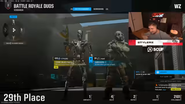 00:15:42Auf eine Zuschauerfrage hin gibt der Streamer klare Ratschläge zur Spiele-Hardware. Für spontanes Zocken empfiehlt er ausdrücklich eine Konsole, da sie einfacher in der Handhabung und weniger fehleranfällig ist als ein PC. Während des Spiels werden strategische Konzepte für Team-Runden in Warzone diskutiert. Der wichtigste Tipp ist, gemeinsam zu landen, als Team zu agieren und sich früh auf einen gemeinsamen Plan festzulegen, um erfolgreichere Runden zu erzielen.