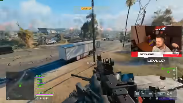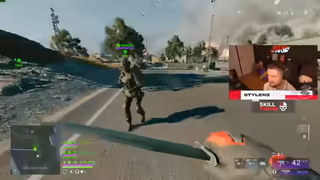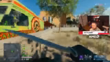 05:31:43Der Streamer wechselt in den normalen Materialmodus, nachdem der Custom Game nicht wie gewünscht funktioniert hat. Nach der Landung in Golf wird er von einem Gegner aus dem Hinterhalt getötet. Bei einem erneuten Versuch in Paps trifft er auf einen Spieler, der einen Tank benutzt, was das Gameplay unvorhersehbar macht. Trotz starker Ausrüstung und Versuchen, sich strategisch zu positionieren, wird das Team eliminiert, was die Herausforderungen des Close-Quarters-Kampfes verdeutlicht.