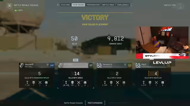 06:43:11Das Turnier beginnt mit einer Runde, in der das Team aggresiv landet und mehrere Gegner-Teams schnell ausschaltet. Trotz anscheinendem Vorteil und guter Positionierung kommt es zu überraschenden Angriffen von Seiten der Gegner, was zu einem turbulenten Kampf führt. Am Ende gelingt dem Team ein Sieg, bei dem es fast 34 Squadkills erzielt, was als starker Start ins Turnier bewertet wird.