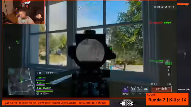 00:31:00Es werden Runden im Battlefield Red Sack-Modus gespielt. Der Streamer diskutiert über das Gameplay, die Waffenauswahl und die Taktiken. Er verg Battlefield positiv mit anderen Shootern und betont, dass es auch bei weniger Kills eine Runde sein kann. Außerdem werden persönliche Spielerfolge, wie zum Beispiel Kill-Streaks, angesprochen und es gibt Diskussionen über die Stärken und Schwächen verschiedener Waffen und Klassen im Spiel.
