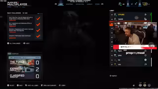 00:16:26Die Streamer haben Frühstück bestellt, da sie etwas abgelegen sind und es keine andere Möglichkeit gab, für vier Personen einzukaufen. Die Diskussion über die Spielersuche (SPMM) geht weiter, wobei die Erfahrungen des Vortages als "Katastrophe" beschrieben werden, da sie am Tag vor dem Release mit Tricks gespielt haben. Es wird die Hoffnung geäußert, dass die Lobbys im Laufe des Tages besser werden. Die Streamer analysieren die Prestige-Level ihrer Freundesliste und stellen fest, dass nur wenige Spieler am Vortag intensiv gespielt haben. Felix hat "lecker Lobbys" bekommen, und es wird über die Map-Auswahl diskutiert, wobei die Präferenz für "gute Maps" statt zufälliger oder kleiner/großer Maps betont wird. Die erste Runde des Tages beginnt, und der Streamer ist von Xbox auf Battle.net umgestiegen, gespannt, ob dies einen Unterschied macht. Es wird festgestellt, dass er noch nicht ganz wach ist und Schwierigkeiten beim Zielen hat. Die Nutzung von 1-Stunden-Boostern wird angesprochen, da diese zu Hause selten verwendet werden. Die Streamer erleben eine "gute Lobby", sind aber noch nicht vollständig konzentriert. Es wird über Schlafdefizit und die Hoffnung auf "Kracherlobbys" gesprochen.