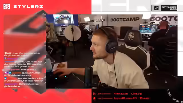 10:22:39Es kommt zu einer Verwirrung über die Chat-Zuständigkeit, da Nachrichten sowohl an den Haupt-Chat als auch an den Chat von Felix gerichtet sein könnten. Ein Zuschauer fragt, ob die Streamer die 'Dries und Waffen' zeigen könnten, was als Frage an Felix interpretiert wird. Währenddessen wird ein technisches Problem mit der Lautstärke im Stream angesprochen, wobei die Zuschauer um Feedback gebeten werden. Es wird vermutet, dass es sich um ein häufiges Problem handelt. Die Diskussion kehrt zu einem früheren Thema zurück, bei dem ein Zuschauer den Streamer auffordert, nicht mit seinem Chat zu reden. Ein anderer Zuschauer fragt nach der Marke der Jogginghose eines Streamers, der antwortet, er habe seine von 'Taco' für 5 Euro oder sie geklaut. Ein Zuschauer namens 'fülliger Flo' bezeichnet sich selbst als 'kleiner, dicker Junge, der zocken will', woraufhin der Streamer humorvoll reagiert. Es wird über die Möglichkeit gesprochen, 'acht Minuten in das Essen reinzupfeffern' und dann eine Pause zu machen. Die Streamer kommentieren kurz über Compilations und einen Clip von MSV, bei dem er sich 'auf die Klondrille setzt'. Es wird erwähnt, dass MSV eine Sprachstörung hat, die sich in seinen Clips bemerkbar macht.