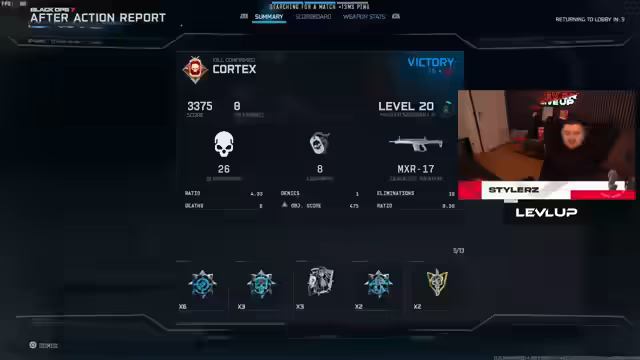 04:30:15Es wird sich bei EvilEye für den Support bedankt. Es wird über Perk Reads diskutiert, die auf Level 26 freigeschaltet werden und zusätzliche Perks ermöglichen. Es wird überlegt, welche Perks man auswählen soll und wie man die Klassen am besten anpasst. Es wird überlegt, ob man Assassin als Perk wählen soll. Es wird überlegt, welche Perks man als drittes Rotes spielen soll. Es wird überlegt, Lightweight zu spielen. Es wird sich darauf gefreut, wenn endlich wieder Skins im Shop sind. Es wird festgestellt, dass es sich komisch anfühlt, dass man nur ein Game kaufen kann. Es wird über den Busfahrer-Skin in der Vault Edition gesprochen. Es wird über Gunfighter Perk gesprochen. Es wird festgestellt, dass die Lobby-Suche nicht funktioniert. Es wird über Team Deathmatch gesprochen. Es wird sich auf Battlefield 6 gefreut. Es wird über die fehlenden Daten gesprochen. Es wird über die neue Map Classified gesprochen. Es wird sich darüber beschwert, dass man nur High-Level-Spieler findet. Es wird über Hardcore S&D gesprochen. Es wird über die TMR gesprochen. Es wird über die Ironside gesprochen.
