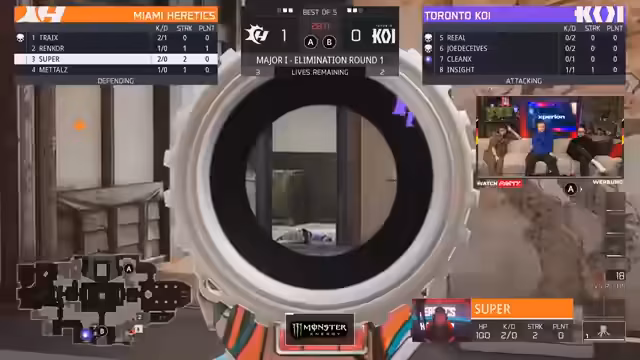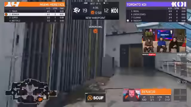 03:00:00Miami gerät in einem Hardpoint-Spiel in eine schwierige Position, da die Spawn-Points von Koi günstiger sind. Trotzdem gelingt es Miami, durch taktische Plays und Kills das Spiel zu drehen und mit 176 zu 165 zu gewinnen. Der Streamer lobt die Raumkontrolle von Miami und betont, dass gute Teams proaktiv agieren, anstatt nur defensiv zu stehen.