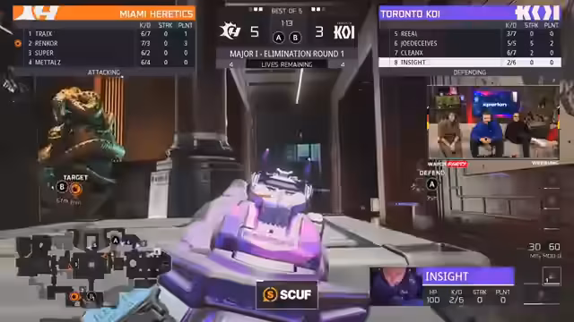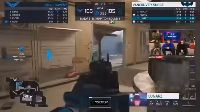 00:29:54Das erste Match des Tages stand zwischen den Royal Ravens und den Vancouver Surge. Aufgrund der hohen Favoritenstellung der Ravens wurde erwartet, dass das Spiel ein deutlicher Sieg für sie wird. Die Partie begann mit Hardpoint, einem Modus, der hohes Tempo und strategisches Spawnen erfordert. Die Ravens hatten am Anfang Probleme mit den Spawns und gaben wichtige Punkte ab, doch es gelang ihnen ein beeindruckendes Comeback, um den ersten Map-Gewinn zu sichern.