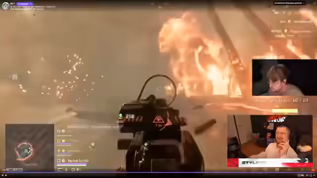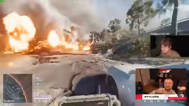 05:41:56Das Team wechselt in ein aktives Kampfsegment mit Helikopter-Einsätzen. Diskussionen über Sitzplatzwechsel im Fahrzeug und Schadensreports dominieren, während sie versuchen, Gegner auf Dächern zu identifizieren. Der Einsatz von Drohnen, Bomben und Smokewerfern wird koordiniert, um Feinde zu verdrängen. Trotz schlechter Ausgangsposition (0-9 K/D) versuchen sie, durch Platzierungs-Punkte in der Mittelzone zu punkten, und analysieren die Positionierung von Gegnern wie Team Otter.