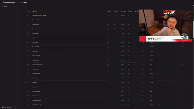 05:19:56Das Turnier eröffnet mit der Vorstellung der teilnehmenden Teams, insbesondere Team JuKays zeigt eine außergewöhnliche Dominanz mit Spielern wie Page und Unknown. Mit K/D-Ratios von 44-6, 33-2, 20-3 und 18-3 übernehmen sie die oberen Plätze der Rangliste und erreichen 211 Punkte, während der zweite Platz nur 112 Punkte sammelt. Das Team wird als extrem krank beschrieben und mit einer Bot-Lobby verglichen, was die Überlegenheit in der ersten Phase des Events unterstreicht.